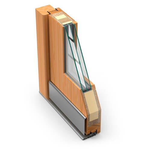 Besides the many glass models in different styles - from contemporary to classic cottage style – the complete range of doors on windows24.com features composite models. Our uPVC door lines are reinforced with steel in the panel and frame. The wood models we offer are built in the so-called sandwich design. Here, different materials are layered for ideal insulation and resistance in the panel. Steel supports the durability of premium wood like oak, and special thermal insulation cores decrease heat loss. Our alu models, on the other hand, rely on special foams in the door frame for their composite element. These foam fillings enhance the qualities of aluminium and ensure great U-values for external doors.