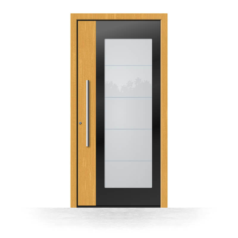 All doors have a galvanised steel core insert as well as the processing of a uPVC sandwich filling, which significantly improves security and thermal insulation with a good U-value. The threshold enables a comfortable transition from the inside to the outside, while at the same time fulfilling the requirements for thermal insulation through thermal separation. In the front door configurator, you can quickly and easily find the prices for your favourite design.