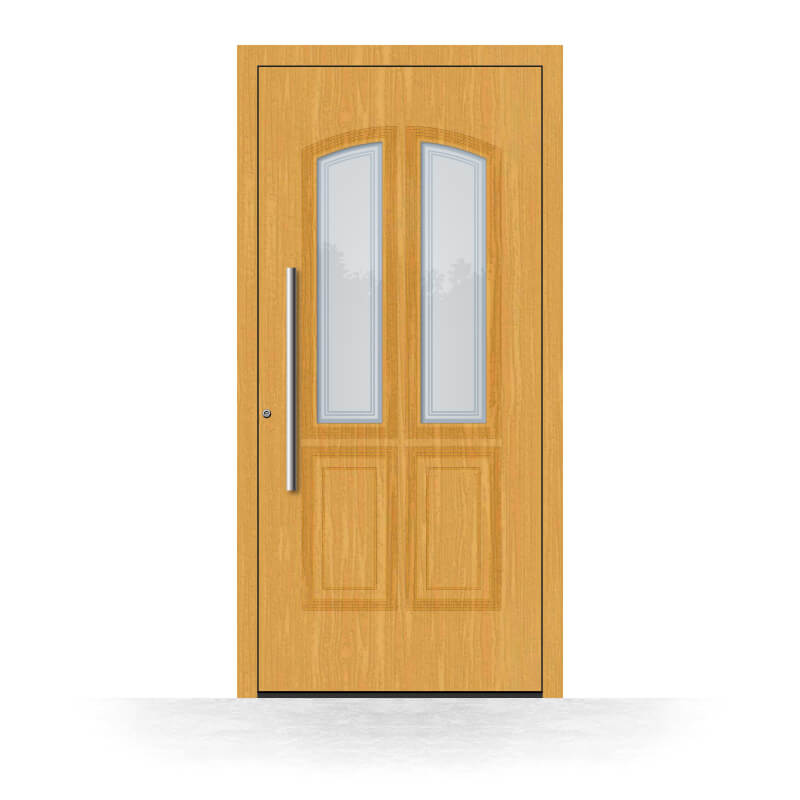 Wood front doors give your home a warm appearance and provide good insulation. Our wooden front doors, also referred to as timber doors, are extremely stable doors thanks to the sandwich construction and a galvanised steel insert. They also meet high requirements for burglary protection. The surface of our wooden doors is protected by modern lacquer systems. On windows24.com, you can buy your wooden front door online at a favourable price.