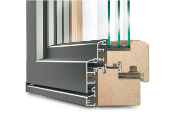 Wood naturally has excellent thermal efficiency and aluminium is also far better insulated today than many people think. In order to be considered suitable for passive houses, a U-value of 0.8 W/m²K or lower for windows and doors is recommended. The window profiles of our ECO series achieve Uw-values of up to 0.72 W/m²K – thanks to additional insulating foam between the wood and aluminium shell and triple thermal insulation glazing.